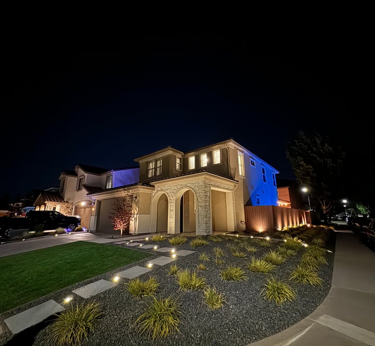 Modesto— Artificial turf + Steppingstones+ lightings