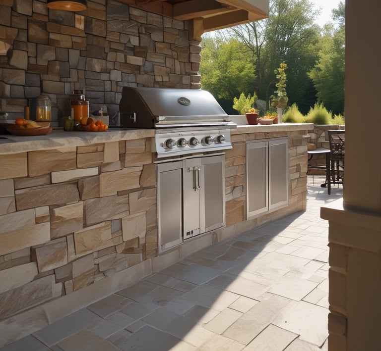 Turlock — Burner Island + pavers + pergola